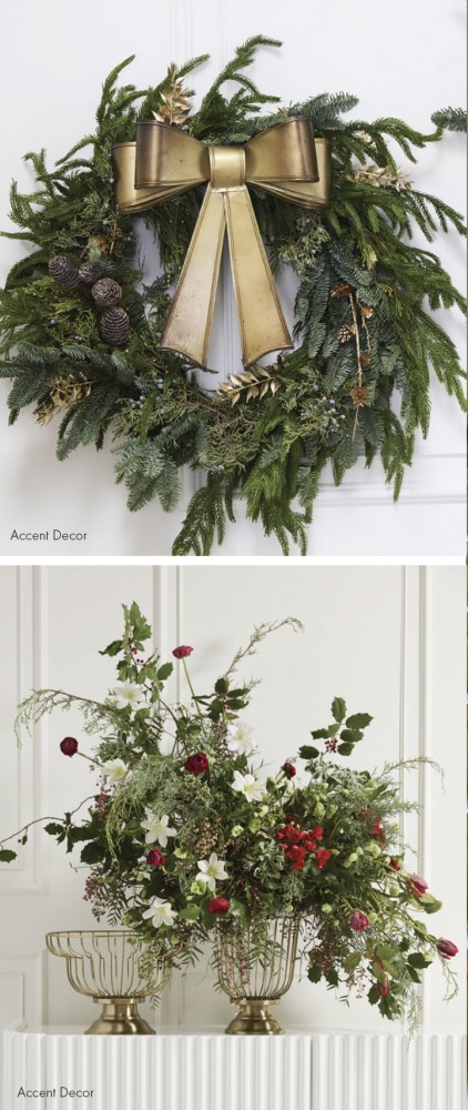 According to Atlanta-based Accent Decor, bows are one of the biggest trends of the year—appearing not only in traditional fabric, but also in metal form. “We’re seeing bows as full-on focal points,” the company’s design team notes, “adorning everything from wreaths to containers, elevating everyday pieces into festive showstoppers.”